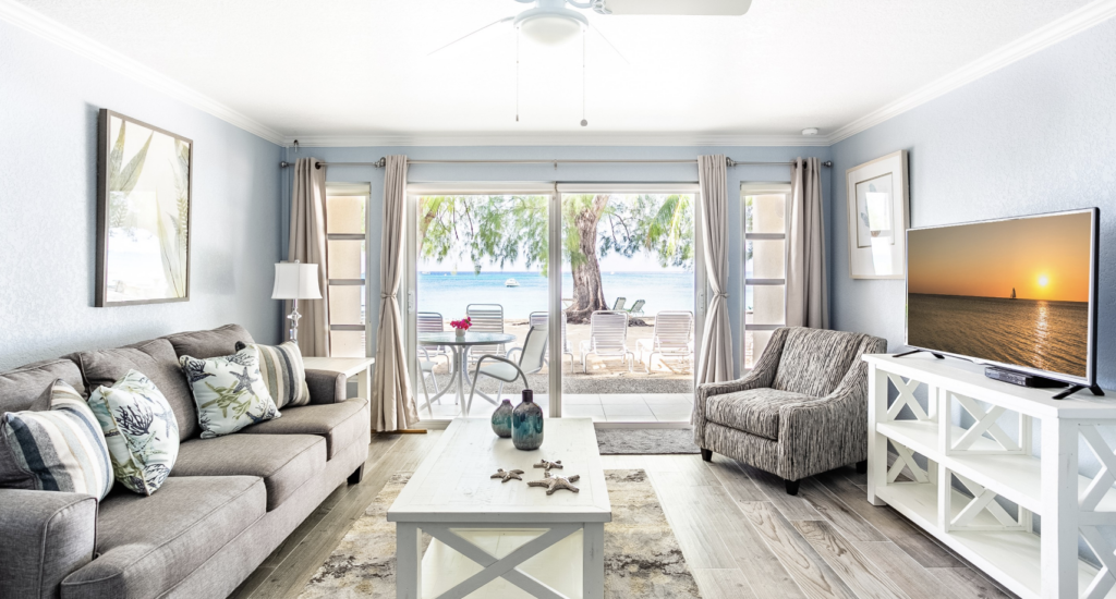 Escape the hustle and bustle of hotel life and retreat to a serene beachfront condo resort that caters to your every need. Nestled on the tranquil northern end of Seven Mile Beach, this one-bedroom, one-bath sanctuary offers a peaceful haven just a short stroll away from some of the area’s finest restaurants, beach bars, and activities.