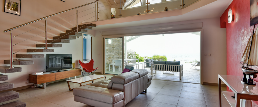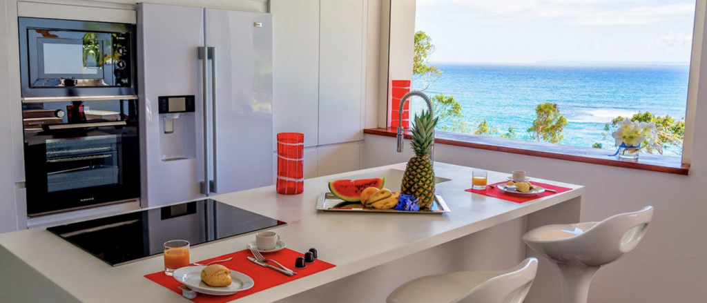This exceptional, modern and contemporary villa enjoys a superb location in Grande Terre. Between the beach’s hotel and the Caravelle’s beach located below, IDIKA’s villa boasts breathtaking views of the ocean and Marie-Galante far away. Let yourself be lulled by the trade winds!