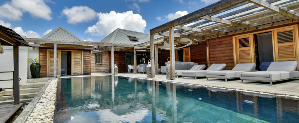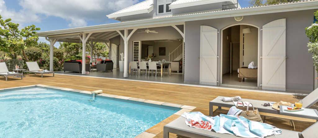 Jardin Located in Saint François. The villa Silver Lodge Guadeloupe is a recent villa located on the beach, in a secured private residence with direct access to the beach of Manganao located 10 m by a small door from the garden of your villa.